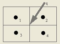 点源——考虑图1所示的有4个节点,1个点源(如激光束)的模型。由对称性知道,4个节点应当处于同一温度。合理的模拟方法是将热量平分,使得4个节点温度值相同。
